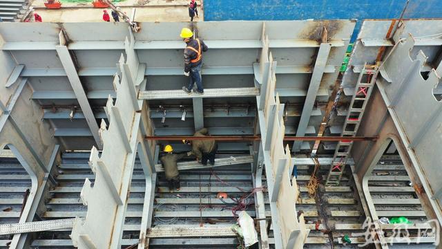 引江濟(jì)淮跨度最大鋼箱梁橋合龍現(xiàn)場
