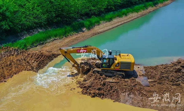 記者在施工現(xiàn)場(chǎng)看到,隨著數(shù)臺(tái)挖掘機(jī)挖開淠河總干渠的攔水圍堰,淠河總干渠的水緩緩流進(jìn)渡槽,“改道”渡槽,正式上跨引江濟(jì)淮運(yùn)河。
