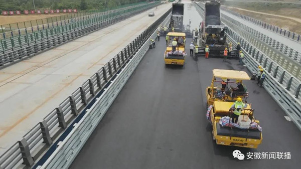 合肥西大門的312國道,交通量非常大,我們項(xiàng)目部也是攻堅(jiān)克難,盡早地把這個(gè)橋開通,這個(gè)鋪裝完成以后,進(jìn)行整個(gè)橋的動(dòng)靜態(tài)試驗(yàn),七月下旬交工驗(yàn)收。
