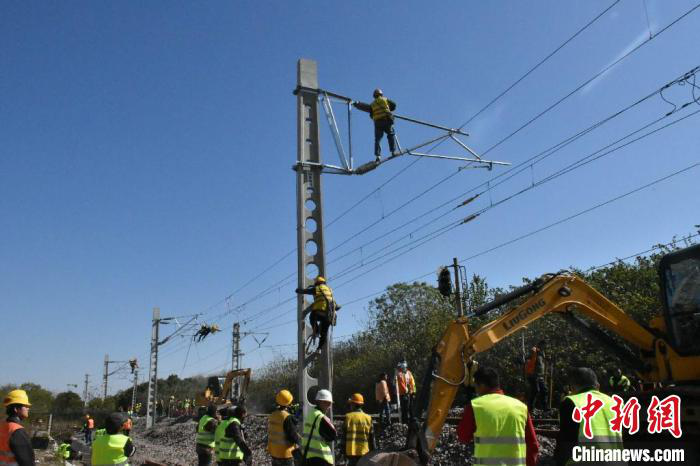 據(jù)了解,由中鐵十局承建的引江濟淮工程(安徽段)引起寧西、滬蓉高鐵四電改建工程,主要內(nèi)容包括寧西、滬蓉高鐵改建工程涉及的通信、信號、信息及災害監(jiān)測,電力及電力牽引供電專業(yè)施工。工程工期長,施工任務重、安全風險大,共需要進行5次大的施工撥接。此次撥接為該工程第4次撥接施工,主要是因為由東向西的寧西鐵路跨越引江濟淮主河道,成為河道向北開挖的“攔路虎”,因此要在原有寧西下行鐵路的南側修建一條臨時便線,為引江濟淮工程騰出施工作業(yè)面。