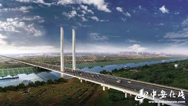 引江濟(jì)淮工程最新消息:橋的雙子塔柱已拔地而起