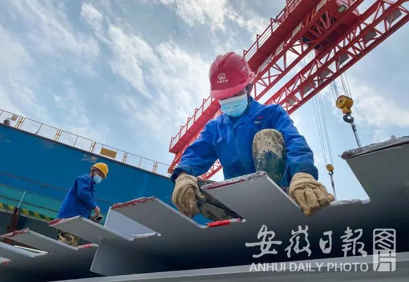 該橋主跨達(dá)180米的四幅錯(cuò)墩連續(xù)鋼箱梁橋,建成后將是中國(guó)內(nèi)河最大跨徑的變截面連續(xù)鋼箱梁橋。大橋上部結(jié)構(gòu)采(100+180+100)米連續(xù)鋼箱梁結(jié)構(gòu),用鋼量達(dá)到1.6萬(wàn)噸。橋梁橫向共分4幅,采用廠內(nèi)板單元制造、橋位處焊接拼裝施工。